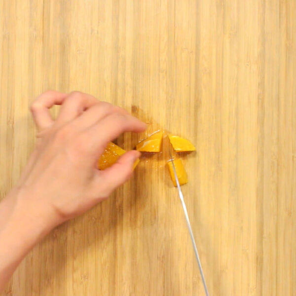 キウイフルーツ、オレンジ、ピンクグレープフルーツは1cm角に切る。