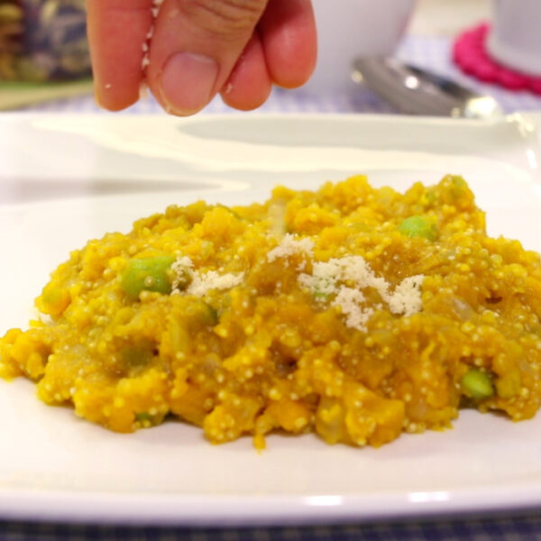 ・食物繊維、たんぱく質も豊富な完全栄養食とされる「キヌア」と、ビタミンACEを含む栄養価の高いかぼちゃを使った、美肌リゾット。