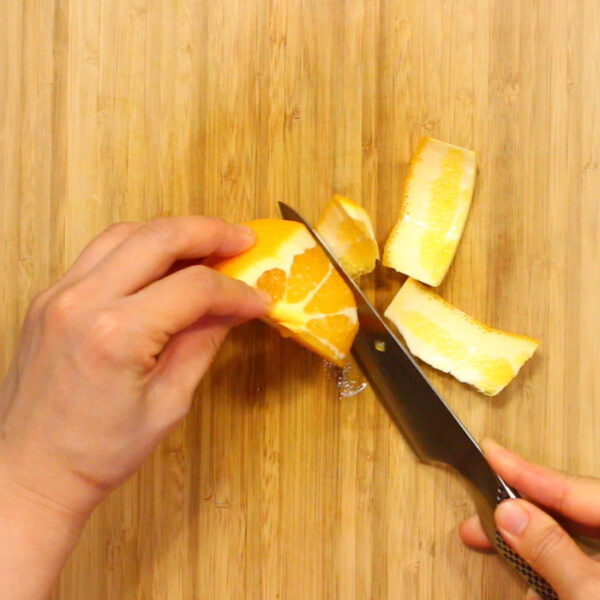 オレンジは皮を剝いて薄皮を除いて、アボカドと同じくらいの大きさに切る。