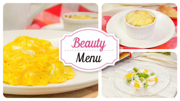 ・卵のタンパク質と、にんじん・ピーマンに含まれるビタミンが美肌作りをお手伝い。上から半熟卵をのせるだけの簡単オムライスレシピです。