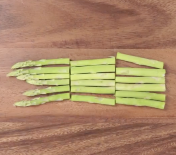 アスパラガスは4cm幅に切り、コーンは水気を切る。