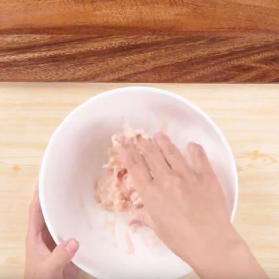 ボウルに鶏ひき肉、Aを入れ、粘りが出るまでよく混ぜ合わせて食べやすい大きさに丸める。