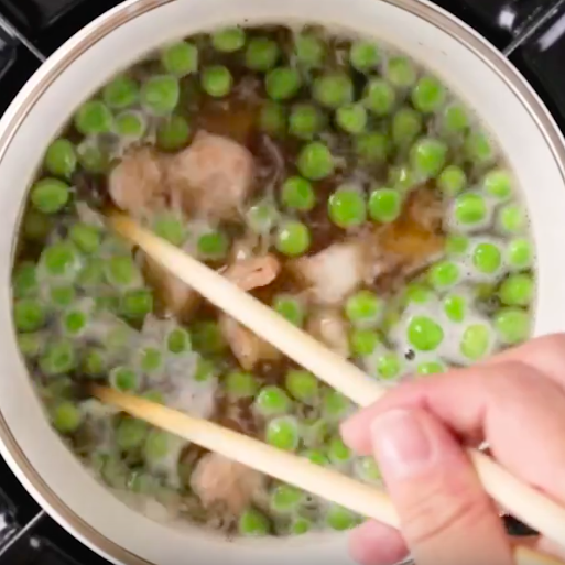 ・グリーンピースがくずれるので、加熱し過ぎないようにしましょう。