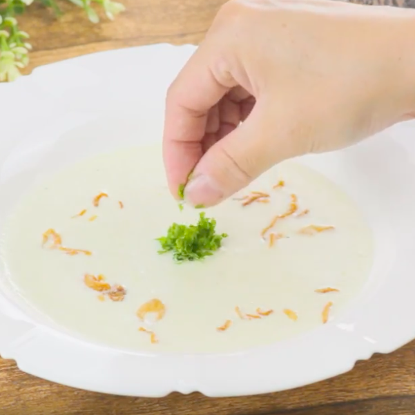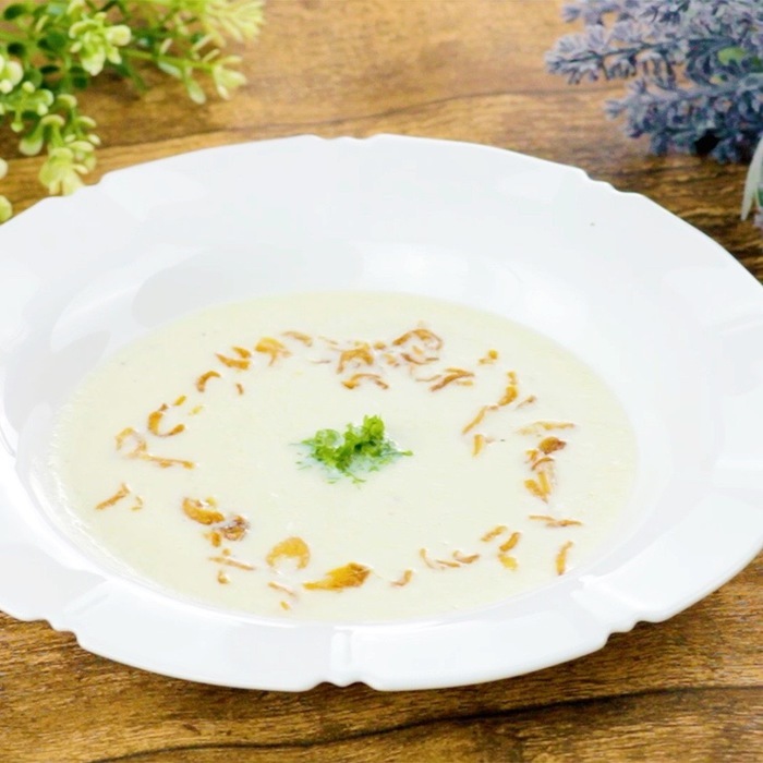 ・おなじみ食材のキャベツを、口当たりが優しく食べやすいポタージュに仕上げました。丁寧に炒めたキャベツの甘味が楽しめます。