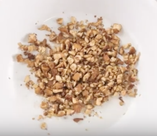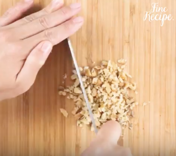 ソイミートを作る。厚揚げをみじん切りにし、くるみも細かく砕く。