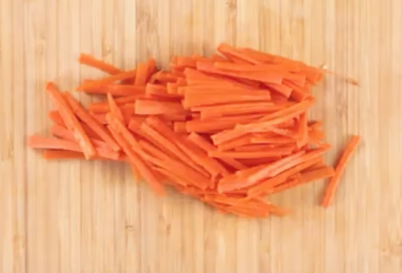 小松菜、にらは2~3cmの長さに切り、にんじんは千切りにする。