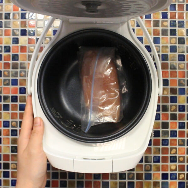 炊飯器に、漬かるくらいの熱湯を入れ「保温」で60分加熱する。