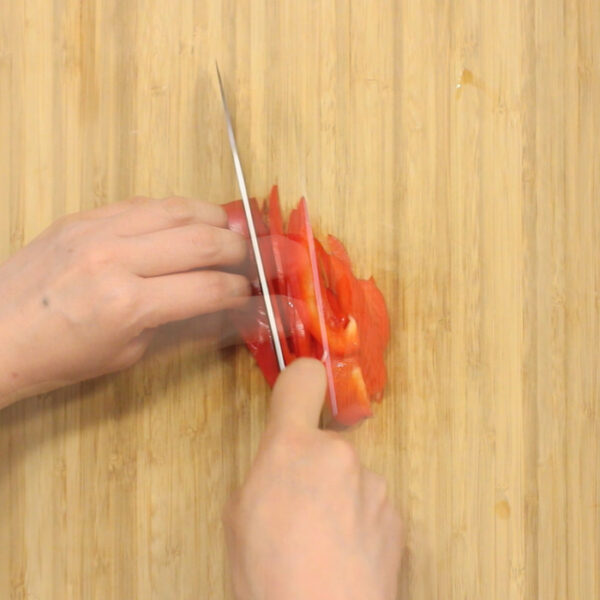 セロリ、たまねぎ、赤ピーマンは繊維に沿って薄切りにする。