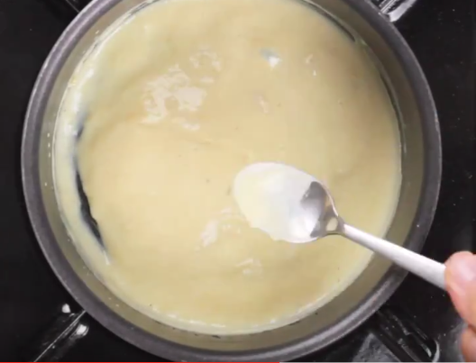 鍋に豆乳を入れて沸騰直前でAを入れ、よく混ざったら、水溶き片栗粉を入れとろみをつける。