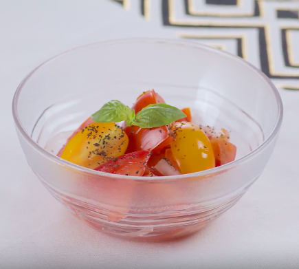 ・色とりどりのトマトをはちみつ・レモン・アールグレイの爽やかな香りが包んでくれる、目覚めにぴったりの香り高いサラダです。