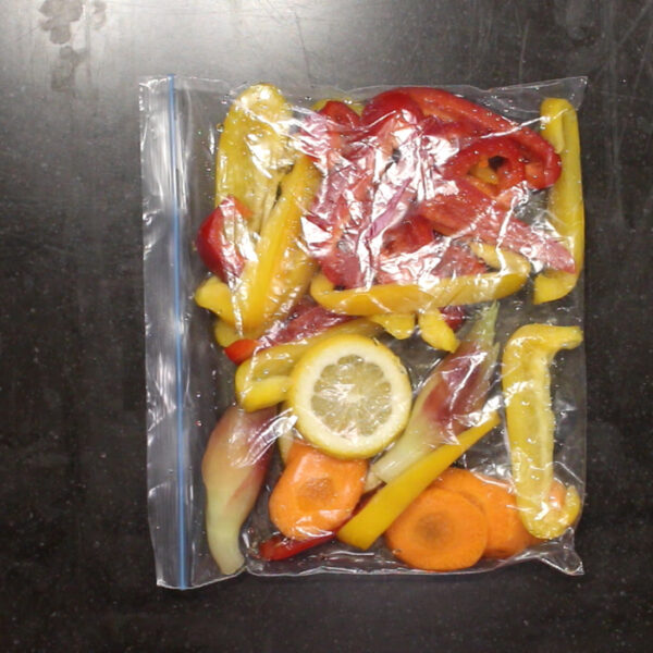 赤・黄パプリカは縦に切る。にんじんは皮を剥き、斜め切りにする。みょうがは一度さっと熱湯を通す。1のピクルス液にレモンを加え、半日以上漬け込む。