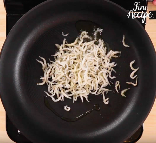 フライパンに油を温め、生しらす、ザーサイを炒める。
