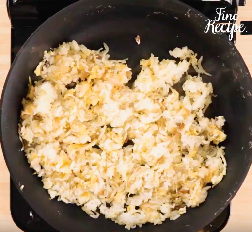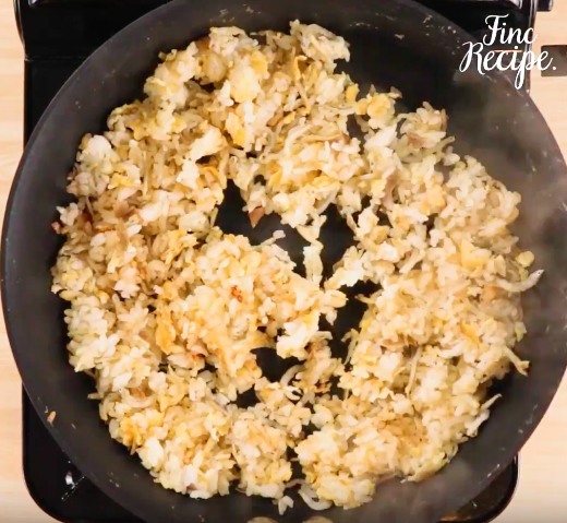 2にご飯を入れてほぐしながら炒め、溶き卵を流し入れてさらに炒める。