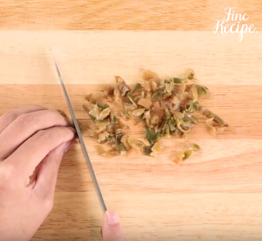 薄口醬油を加えてよく炒め、塩味が足りないようなら塩で味を調える。