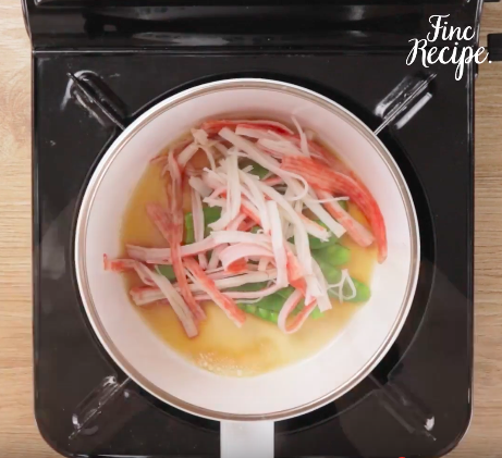 小鍋にだし汁、薄口醬油を温め1を加える。