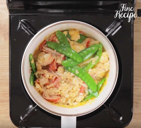 ・卵がボロボロにならないよう、混ぜすぎないように気を付けます。