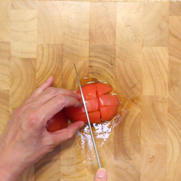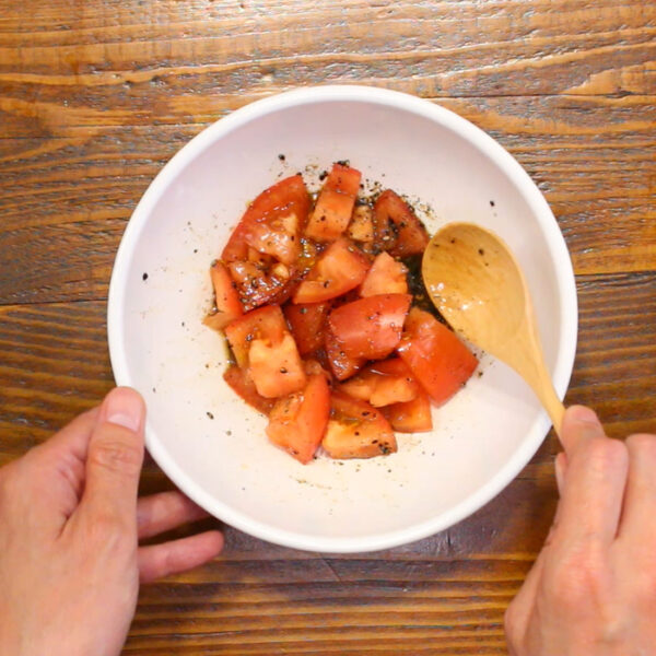 ・トマトとごまの和え衣を合わせるときは、トマトをつぶさないようにしましょう。