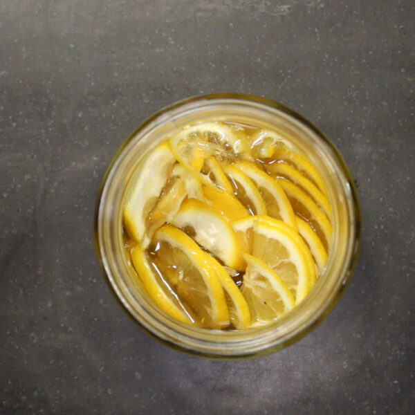 1のレモンをはちみつと混ぜ、冷蔵庫で1晩以上置く。