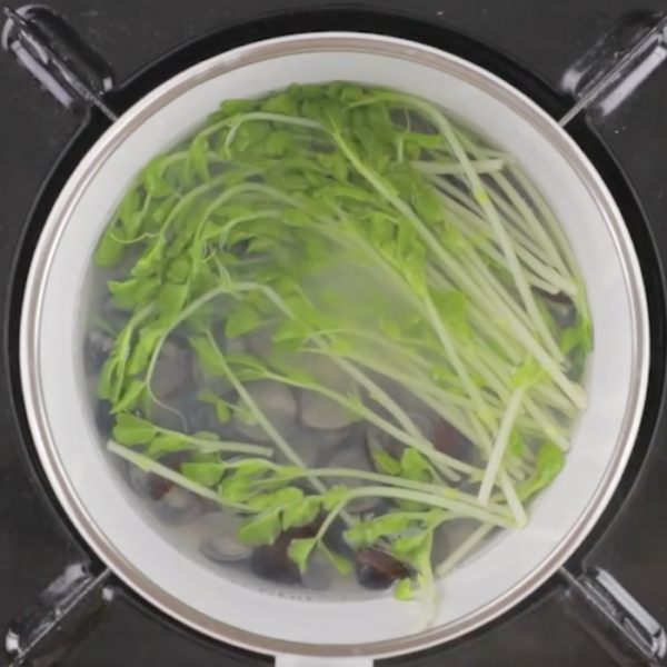 沸騰したら豆苗を入れて火を止め、味噌を入れる。