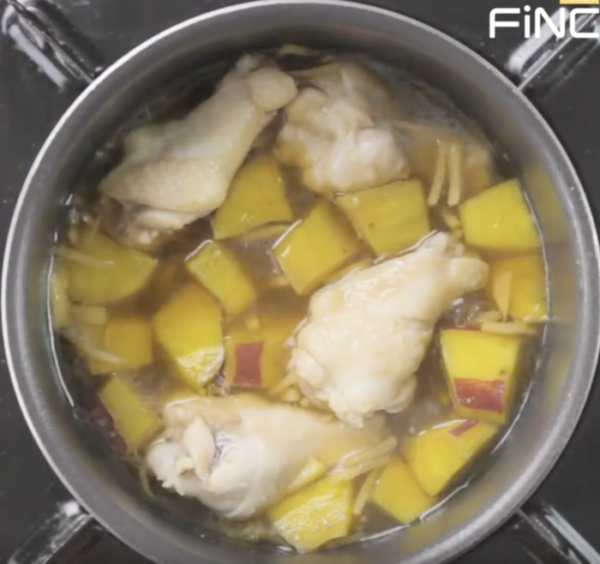 鍋にA、1、手羽元を入れて火にかけ、沸騰したら弱火にして煮込む。さつまいもが柔らかくなったら完成。