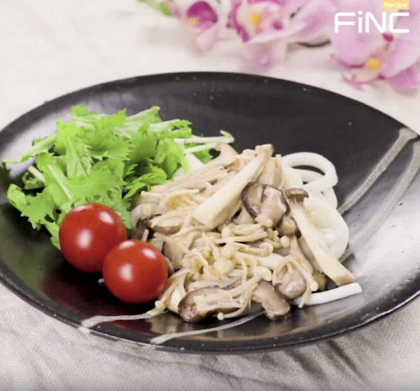 ・もちもちしたうどんと、プリプリしたキノコの食感のコラボレーションをお楽しみください。