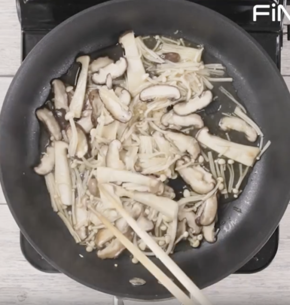 ・堅いきのこ類から火にかけましょう。