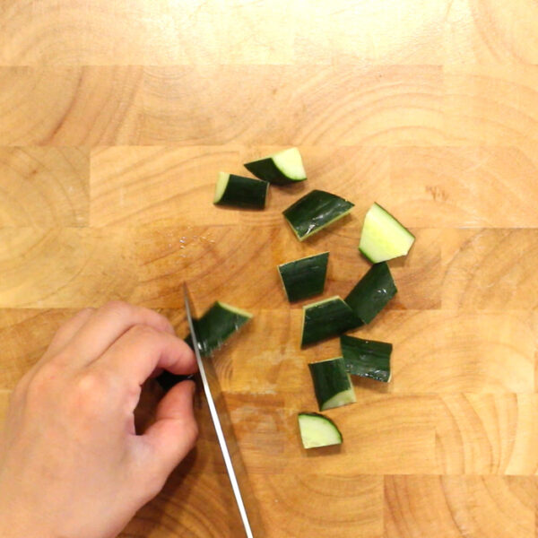 ・きゅうりは乱切りすることで調味料が接触する面が大きくなり、味がよくなじみます。