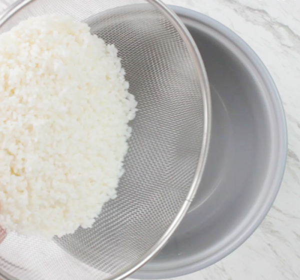 お米は洗って30分以上浸水させて、ザルにあげる。