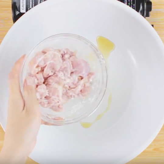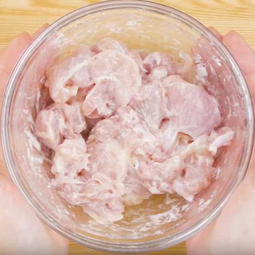 ・鶏に付けた片栗粉に調味料がよく絡み、しっかりとした味になります。