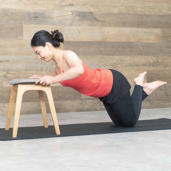椅子に手をつき、膝から頭まで一直線になるように保つ