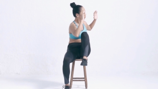 座ったままできるので、オフィスなどでもオススメのトレーニングです。しっかりと肘と膝を近づけるイメージで行いましょう。