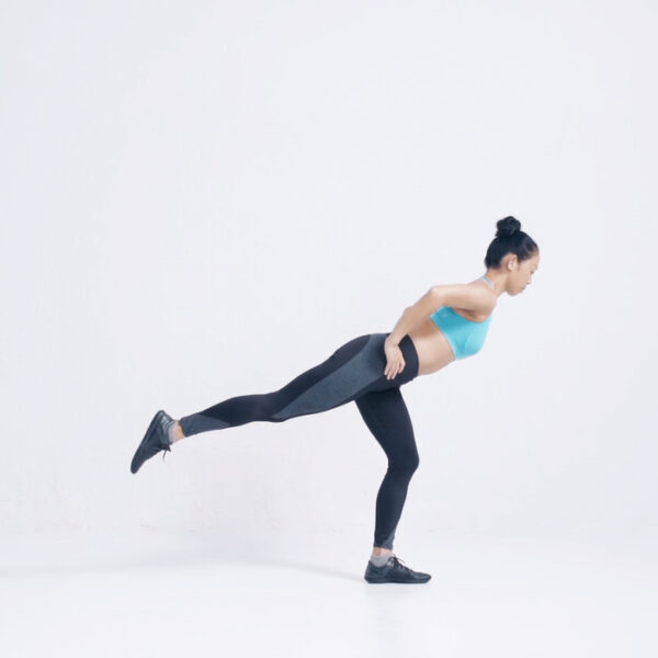 上体を倒しながら片脚を後ろへ伸ばしていきます
