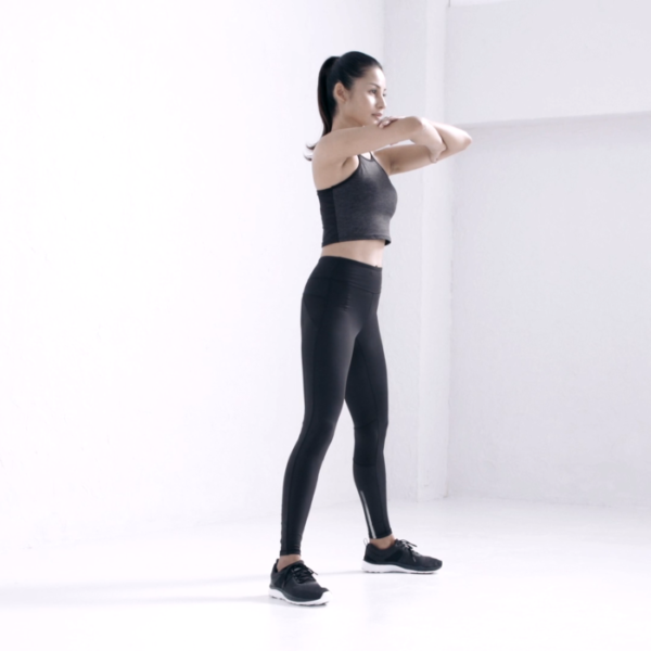 胸の前で腕を組み、背筋を伸ばしましょう