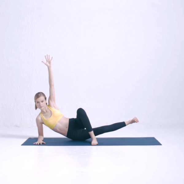 もう片方の手をまっすぐ伸ばし、ついた肘で床を押します