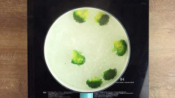 ブロッコリーを小房に分けて、沸騰したお湯で30秒ほど茹でる。黄色ピーマンとキャベツを一口大のざく切りにする。