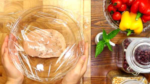 ラップをして500wの電子レンジで約4分加熱して蒸らし、粗熱をとる。