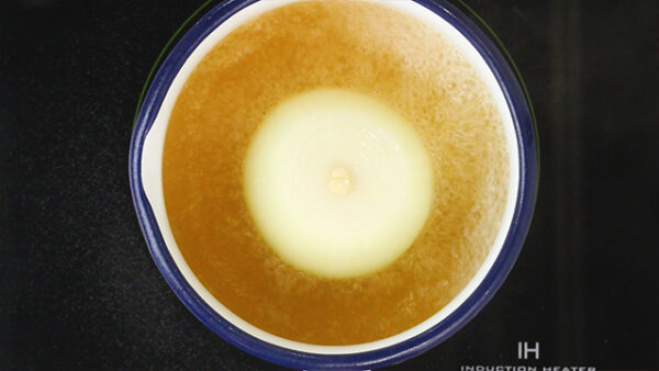 水、固形ブイヨンを1の鍋に入れて、たまねぎが柔らかくなるまで加熱する。(沸騰してから7〜8分程度煮込む)