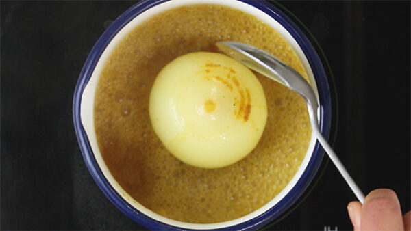 たまねぎが煮えたら、カレー粉と胡椒を入れて混ぜ合わせる。