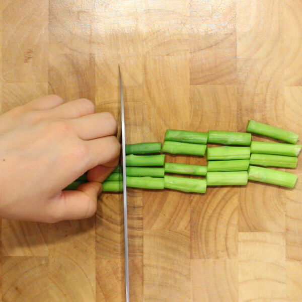 アスパラガスを塩茹でにし、3〜4cmの長さに切る。