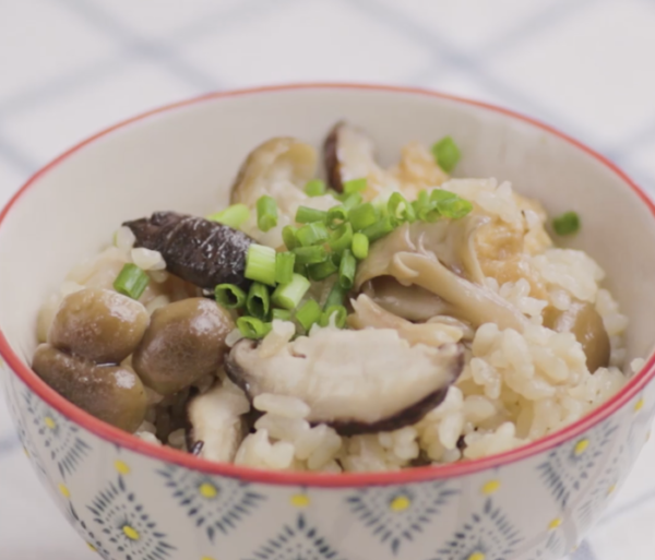 ①舞茸の香りにそそられる♡きのこと油揚げの炊き込みごはん