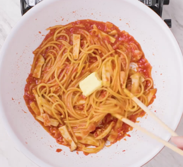 ・パスタは加熱はじめの方は特にくっつきやすいのでよく混ぜてください。