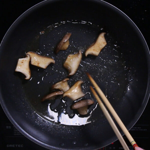 5を待つ間に、再びフライパンを熱し、3で残ったエリンギを炒める。