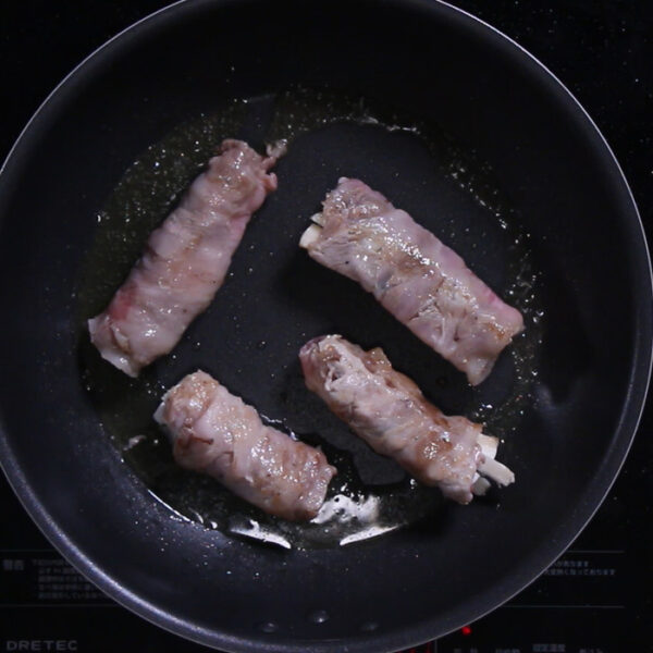 フライパンにオリーブ油をしき、3の肉を焼き、蓋をして中までしっかり火を通す。