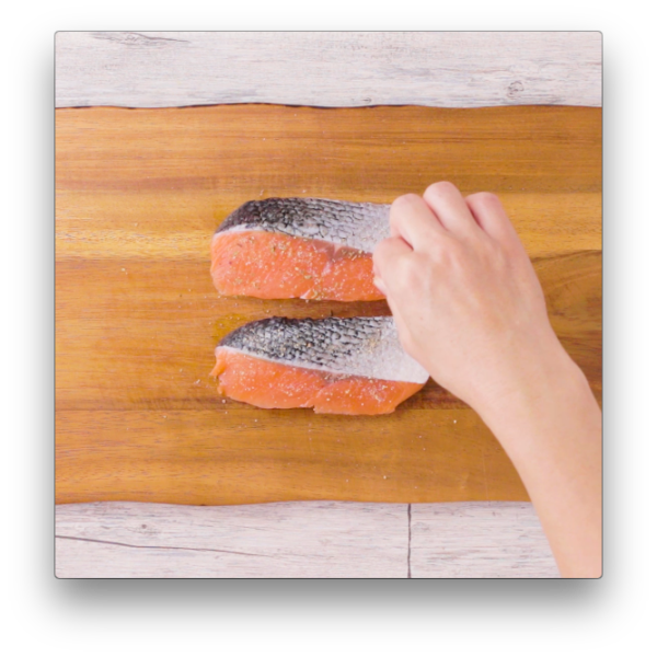 鮭に塩、黒胡椒、バジルを両面にふる。