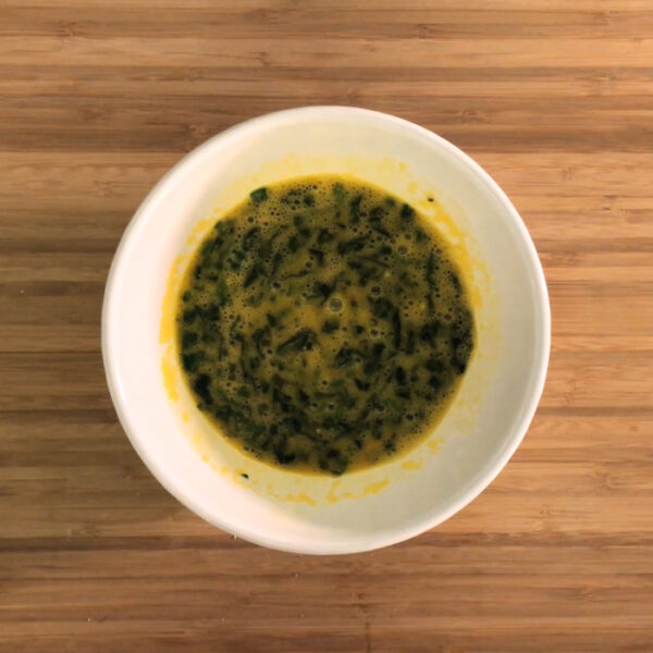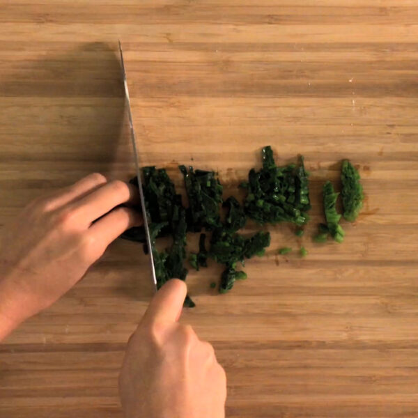 ほうれん草を茹でてしっかり水気を絞り、粗いみじん切りにする。