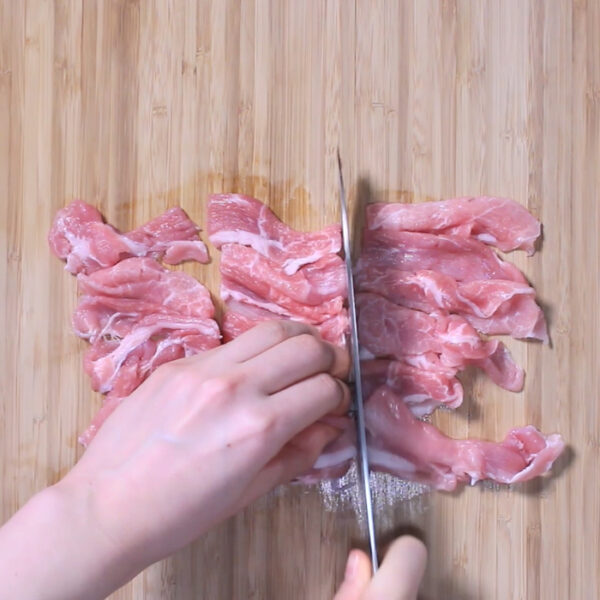 豚もも薄切り肉は食べやすい大きさに切る