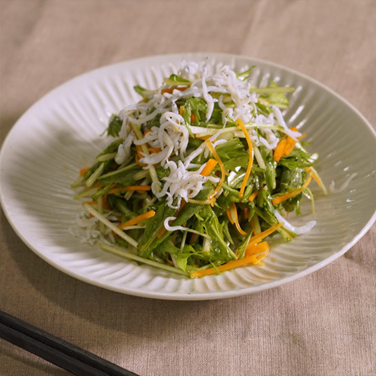 ①Ca補給!水菜と人参のマリネ