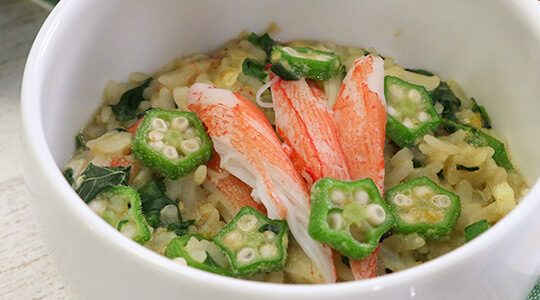 優しい味わい♪モロヘイヤとオクラのとろとろ雑炊